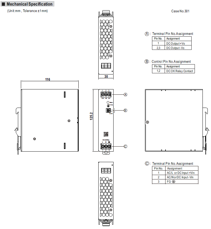 منبع تغذیه XDR-120E بدون فن ساخته شده و با توجه به نصب بر روی ریل انتقال حرارت از طریق هوای آزاد انجام می گیرد.